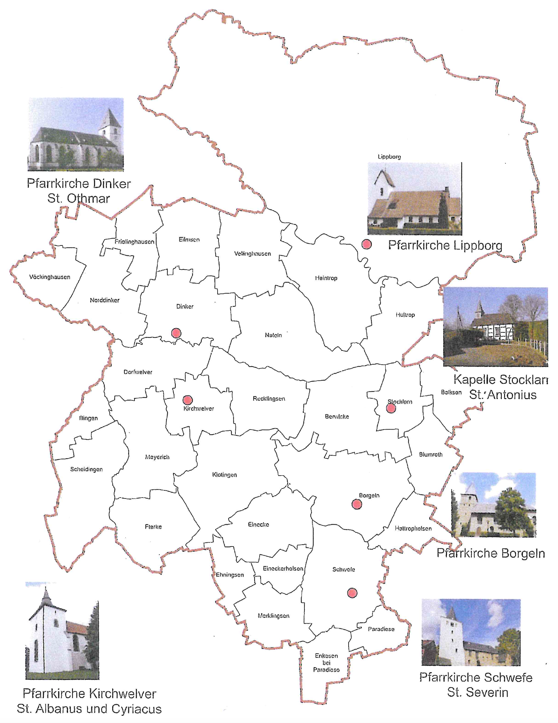 Entsprechend der alten Gemeindegrenzen gibt es ab Januar 2018 vier Bezirke: Borgeln, Dinker, Schwefe und Welver.